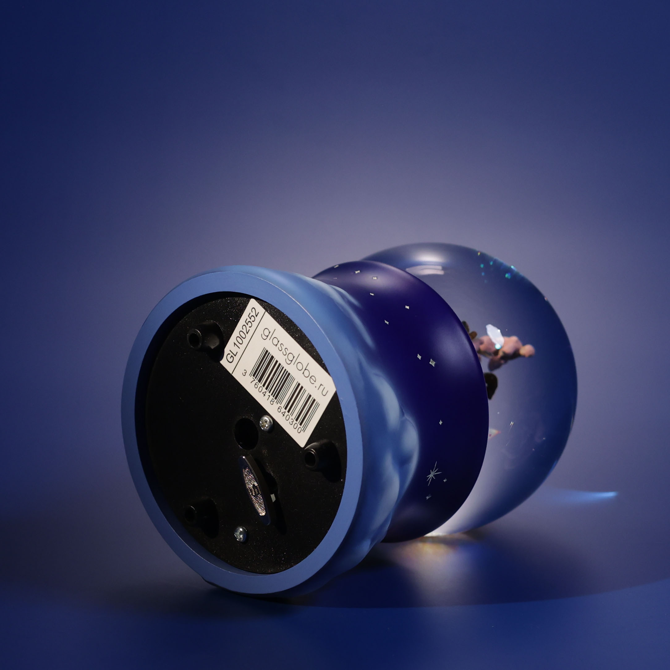 Диаметр снежного шара — 10см, высота вместе с подставкой — 15см.