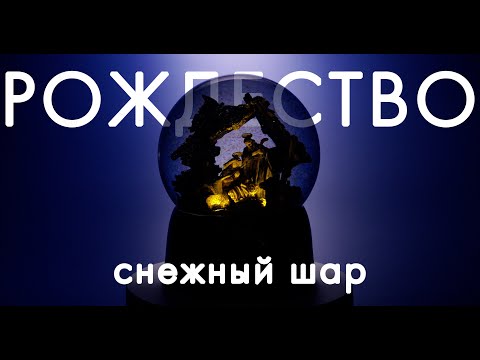 Рождественская вертепная композиция в стеклянном шаре. Переливающиеся в свете мягкой подсветки блёстки создают полную иллюзию рождественской ночи. Персонажи вертепа как будто действительно находятся под волшебным звёздным небом.